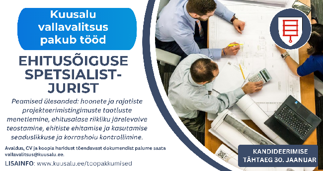 Kuusalu vallavalitsus pakub tööd ehitusõiguse spetsialist-juristile