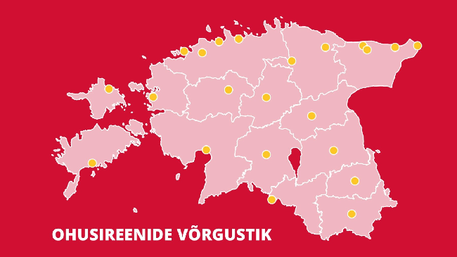 Sireenid on paigaldatud järgmistesse asulatesse: Tallinn ja selle lähiümbruse tiheasustusalad, Tartu, Narva, Pärnu, Võru, Paldiski, Sillamäe, Tapa, Jõhvi, Kohtla-Järve, Maardu (sh Muuga), Rakvere, Valga, Keila, Viljandi, Jõgeva, Põlva, Rapla, Kärdla, Kuressaare, Haapsalu ja Paide.