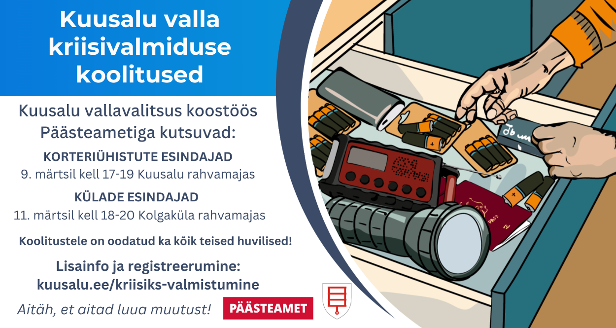 Kuusalu vallavalitsus koostöös Päästeametiga kutsuvad teid osalema kriisivalmiduse tasuta koolitustel:
