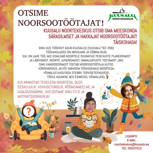 Kuusalu noortekeskus pakub tööd täiskohaga noorsootöötajale.