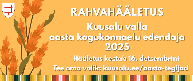 Nagu paaril viimasel aastal, valib ka tänavu Kuusalu valla aasta tegijate ühe kategooria laureaadi rahvas - usume, et valik pole lihtne ning kõik 9 kandidaati on seda tiitlit väärt. ...
