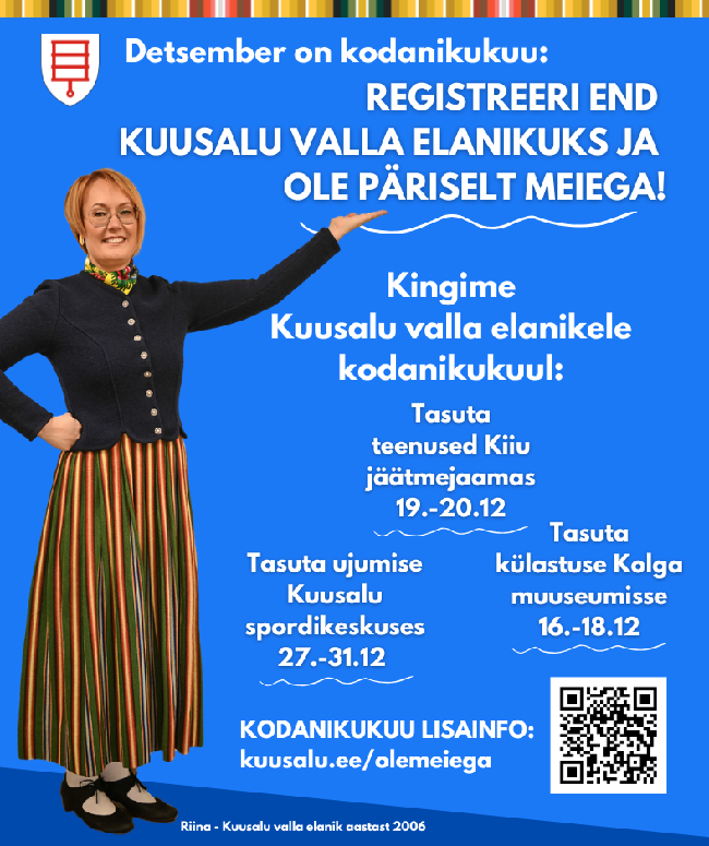Kuusalu vallavalitsuse töökorraldus pühadeperioodil: 22.12 vallamaja avatud kell 8-16 23.12 töö kodukontoris kuni kell 13 29.12 vallamaja avatud kell 8-16 30.12. tööpäev kodukontoris...
