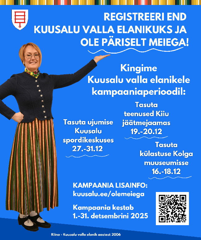 Kolga muuseum ootab täna, homme ja ülehomme Kuusalu valla sissekirjutusega elanikke TASUTA külla! Juba alates reedest saab kampaania raames tasuta teenuseid Kiiu jäätmejaamas ning...
